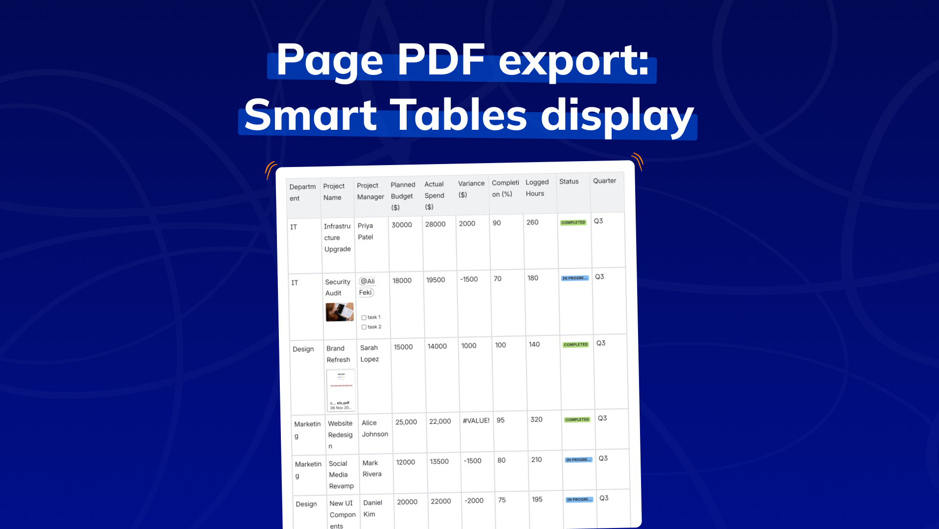 Page PDF export_ Smart Tables display | Creativas