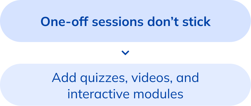 Training effectiveness isn’t just assumed, it’s measured. Quizzes confirm whether employees actually understand and apply what they’ve learned, helping managers identify knowledge gaps.