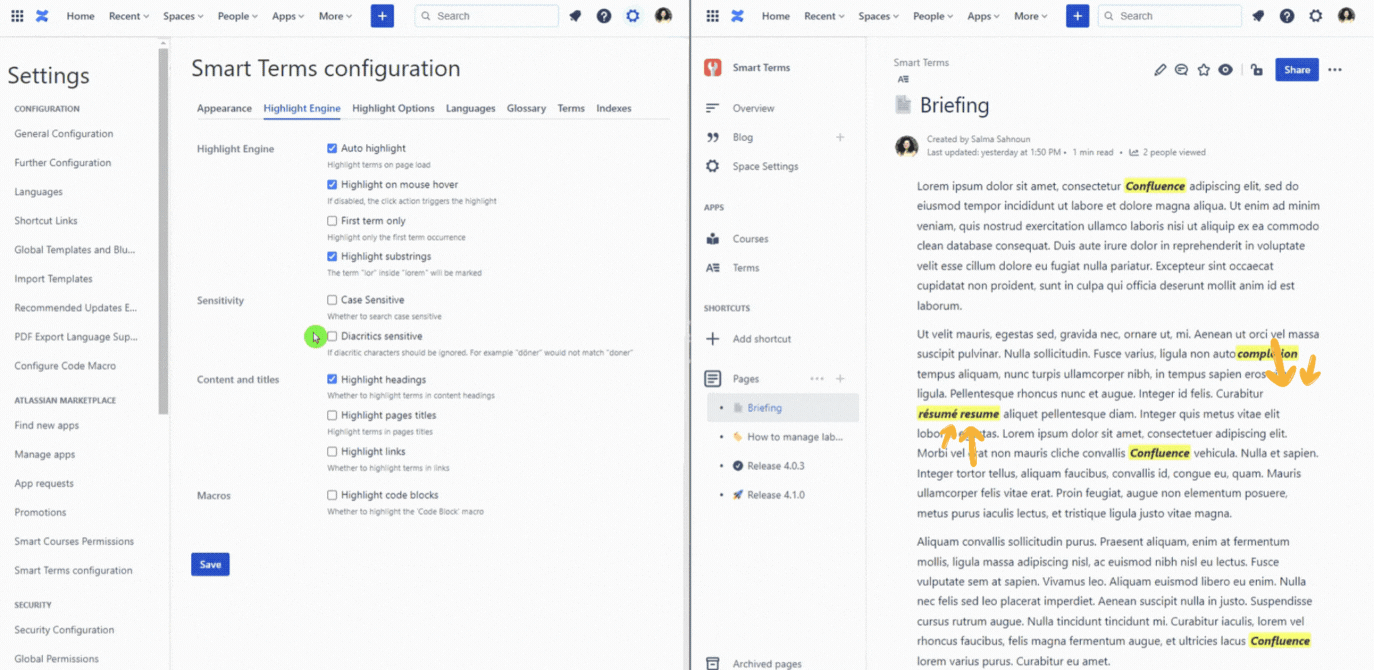 Enable diacritics sensitive option in Smart Terms for Confluence | Creativas