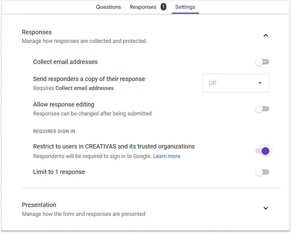 Google forms settings | Creativas