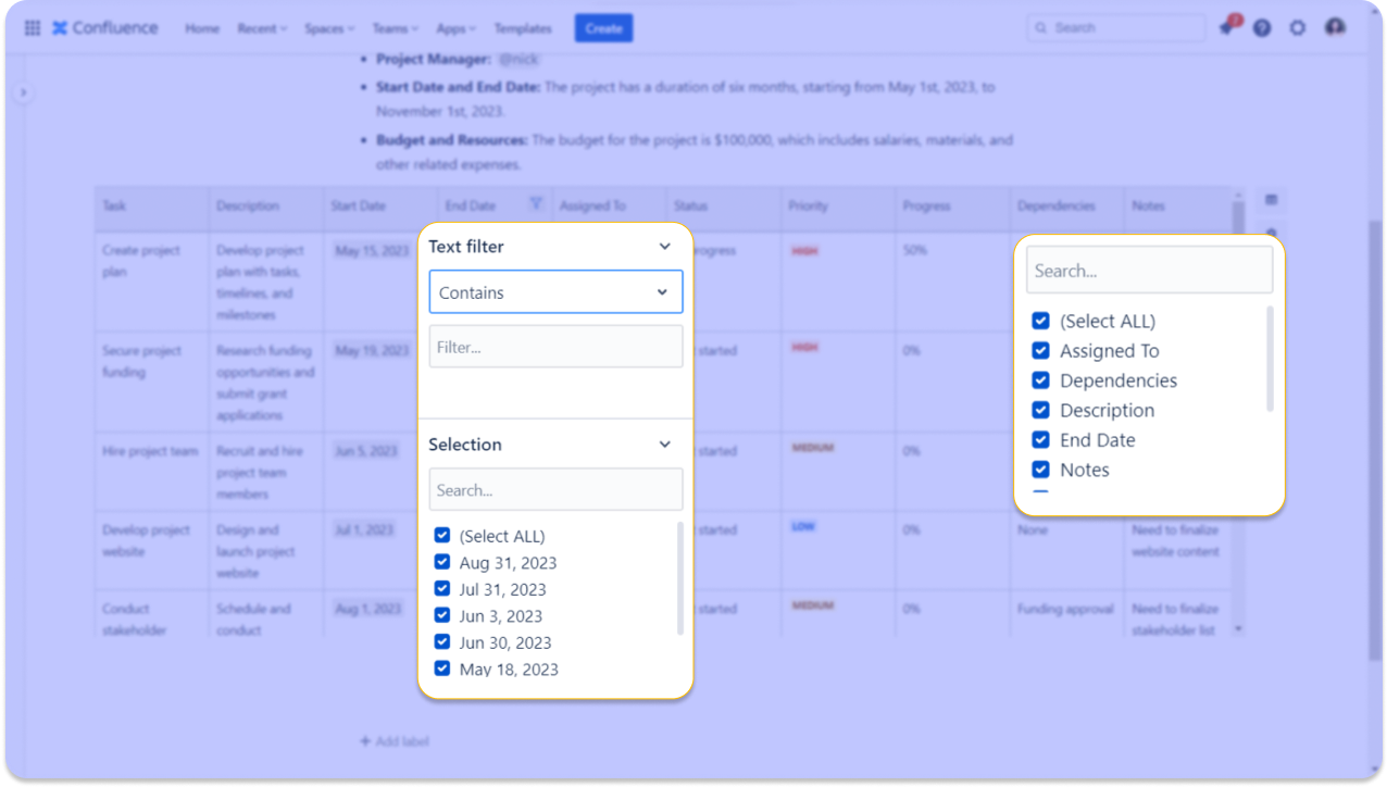 Filtering options in Smart Tables Cloud | Creativas