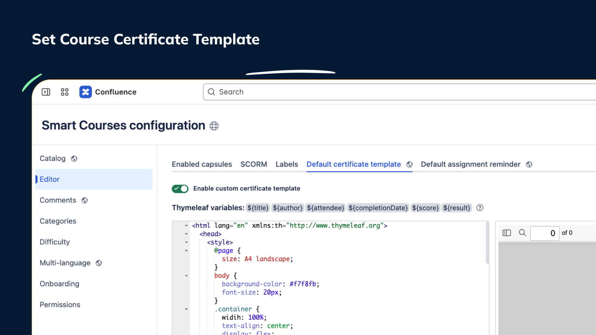 Set course Certficiate in Smart Courses for Confluence LMS | Creativas